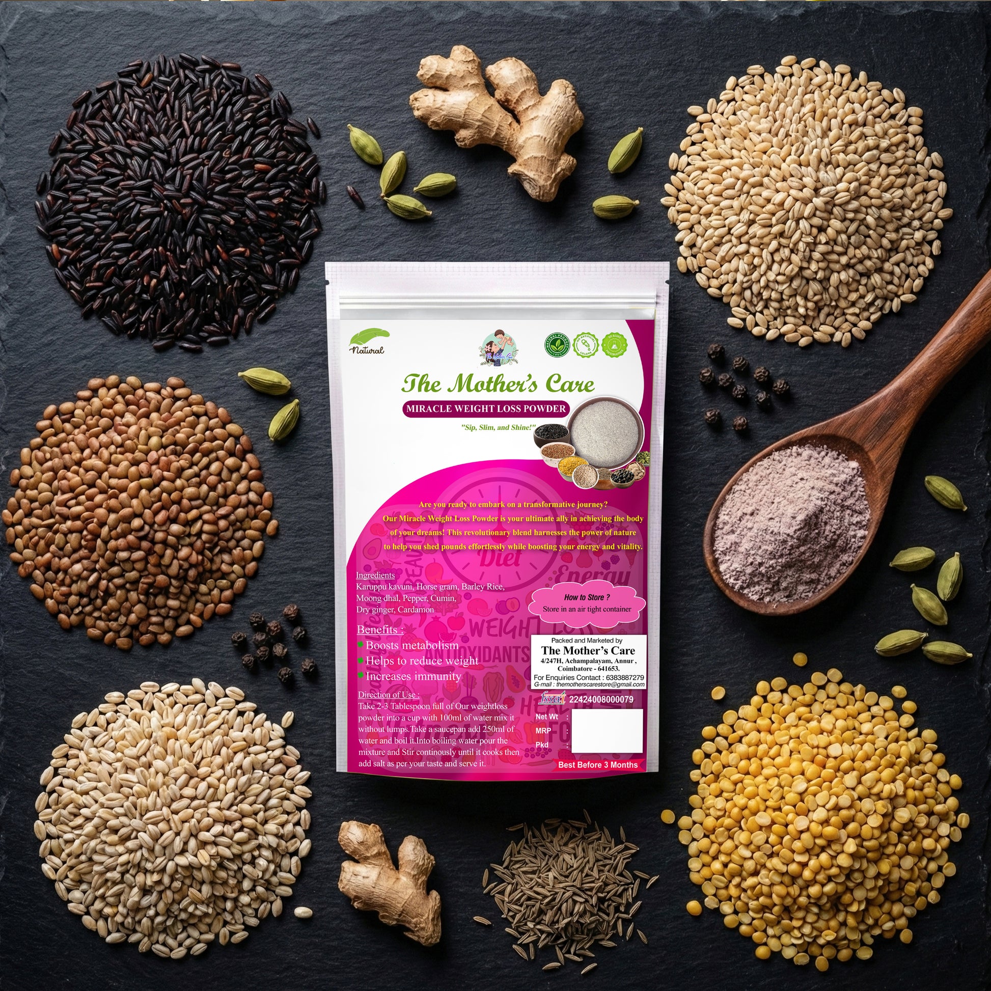 The Mother’s Care Miracle Weight Loss Powder is a powerful traditional blend of natural ingredients designed to support healthy weight management, boost metabolism, and improve overall wellness. Daily use-ku perfect, side-effects illa, home-style nutrition blend.